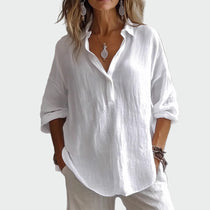 Ružičasta lanena bluza s dugim rukavima kombinira eleganciju i udobnost, idealna za svaku priliku. S opuštenim krojem i otvorenim dekolteom pruža prozračan osjećaj i ženstveni stil. Tanka lanena tkanina omogućuje koži da diše, što je čini savršenim izborom za proljetne i ljetne kombinacije.