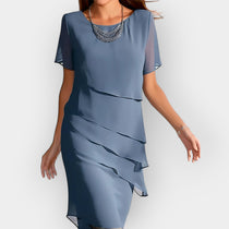 Otkrijte eleganciju s ovom laganom haljinom od šifona, idealnom za svaku svečanu prigodu. Graciozno i sa stilom obavija tijelo.