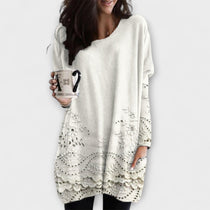 Riley – Udoban Pulover s Printom postat će tvoj novi omiljeni izbor za opuštenu eleganciju. Sa valovitim rubom, raskošnim cvjetnim vezom i oversize siluetom, spaja luksuzne detalje s udobnošću za svaki dan.