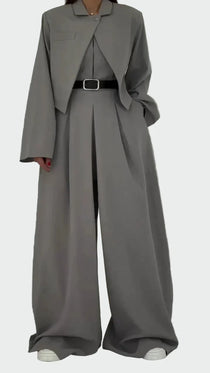 Set koji kombinira bustier i jaknicu u elegantnoj i modernoj liniji. Dizajn naglašava siluetu s diskretnim šarmom, dok jaknica pruža udobnost i praktičnost. Idealno za posebne prilike i pojavljivanja koja zahtijevaju stil i samopouzdanje.