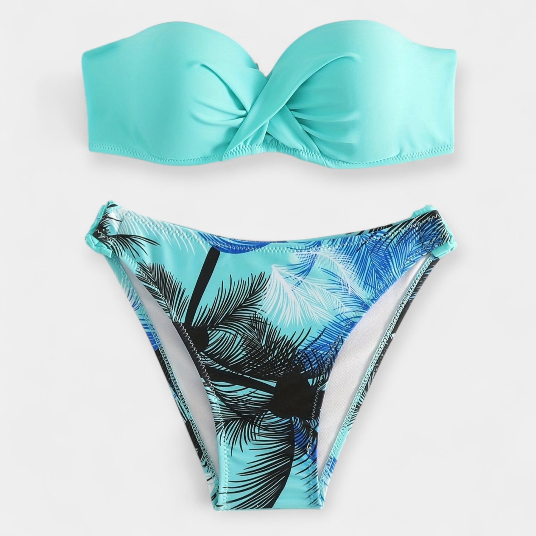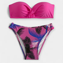 Ovaj impresivni bikini u dva dijela spaja egzotičan stil i odvažnu ženstvenost. S upečatljivim biljnim uzorcima, vezanjem na vratu i leđima te otvorenim leđima, naglašava siluetu i pruža moderan izgled za svaku ljetnu prigodu.