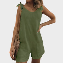 Ovaj bijeli playsuit nudi savršenu ravnotežu između opuštenog stila i elegancije. Idealan je za ljetne dane, odmore i šetnje.
