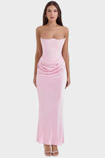 Impresivna i senzualna haljina sa strapless korzetom i pripijenim krojem koji naglašava siluetu.