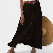 Prozračna i elegantna, ova suknja odiše suptilnom ženstvenošću i pruža svestranost za svaku priliku. S blago prozirnom tkaninom i gumbima sprijeda, može se nositi od jutra do večeri uz prikladan styling.