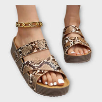 Ove jedinstvene platforme nude udobnost i eleganciju tijekom cijelog dana. S pletenim detaljima i širokim remenima koji savršeno prianjaju uz stopalo, idealan su izbor kako za svakodnevne, tako i za posebnije prigode.